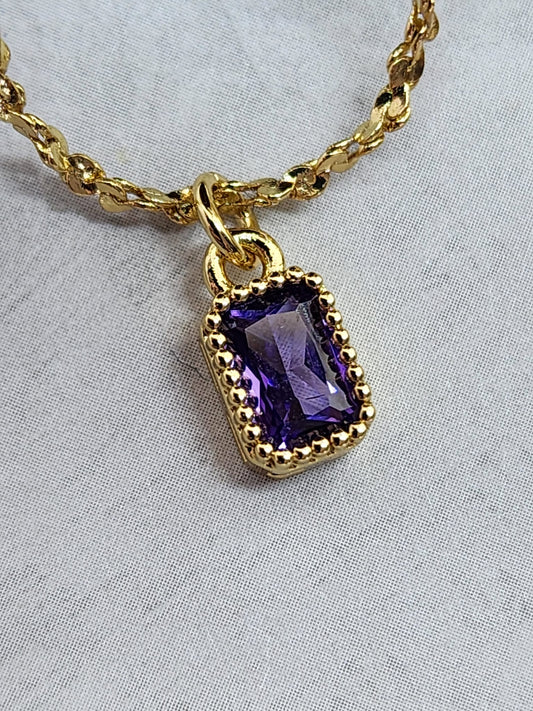 Birthstone Necklace and Earring Set 18K Gold Plated - Amethyst Stone w/Multi Color Earrings