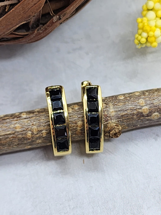Birthstone Necklace and Earring Set 18K Gold Plated - Black Stone